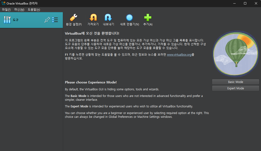Virtual Box 에서 '새로만들기'