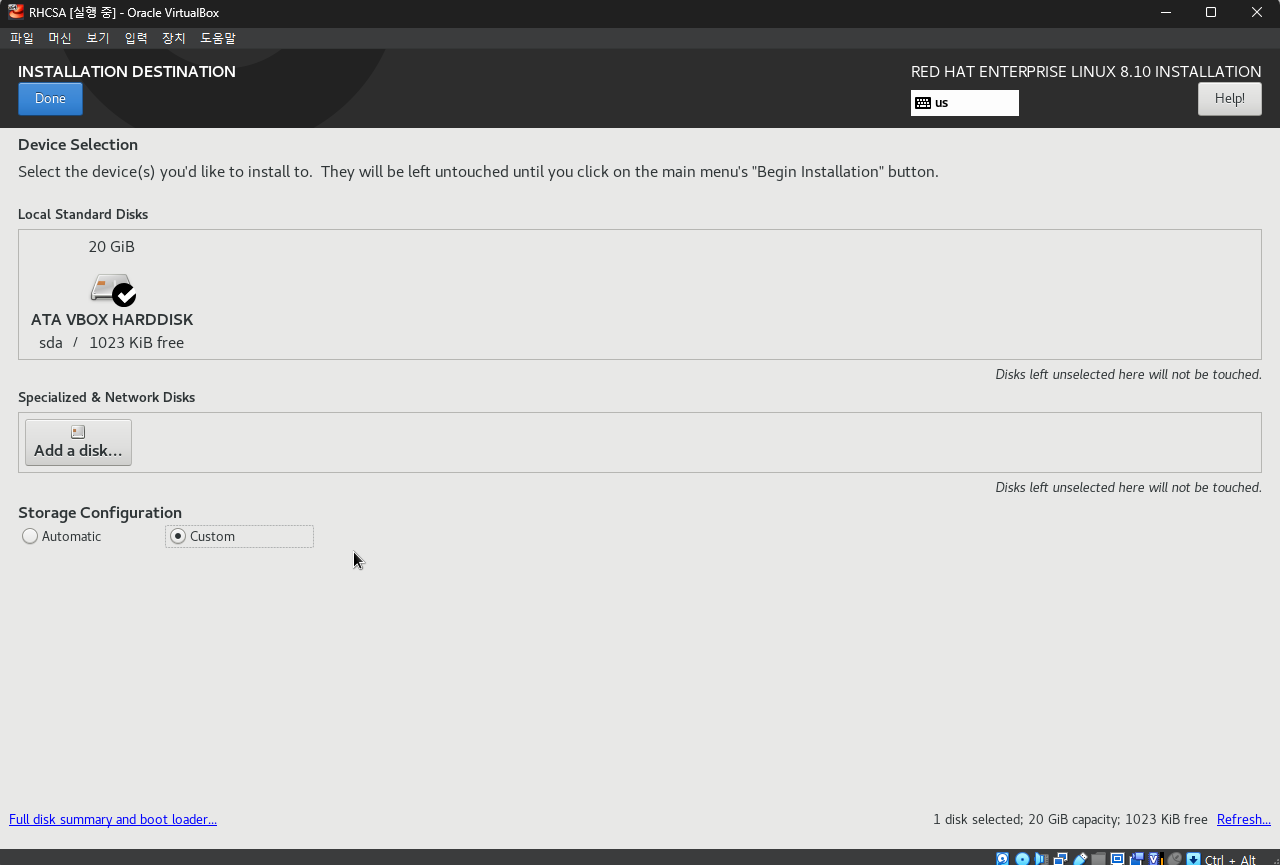디스크를 체크하고 Custom을 선택해주고 Done을 눌러줍니다.