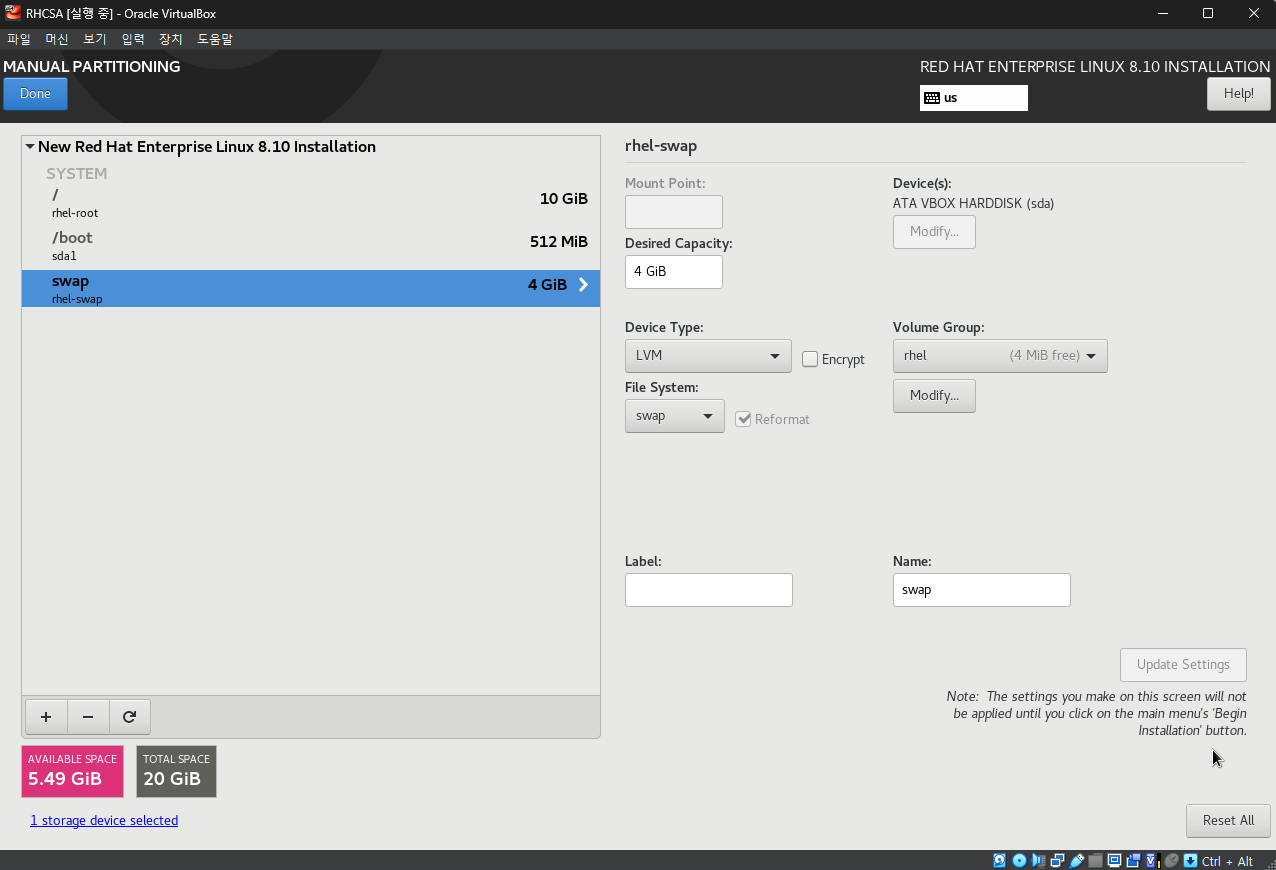 저는 Oracle Virtual Box 에 RHEL9를 설치 해서 연습했습니다.