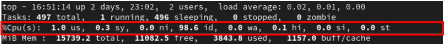 - id : 사용하지 않는 CPU 비율